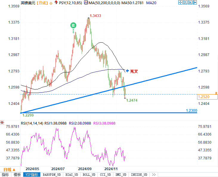 英镑兑美元跌至接近1.2500的心理支撑位。美元反弹,推动