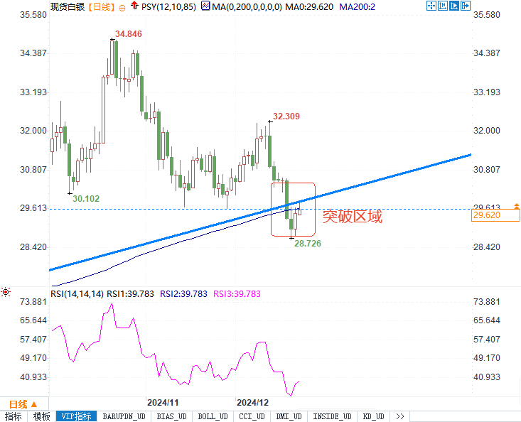 汇通财经APP讯——12月23日周一盘中,截至目前白银价格(XAG/USD)延续了上周五的反弹行情,交投于29.60美元附近,摆脱了此前三个月低点28.75美元的压制。
