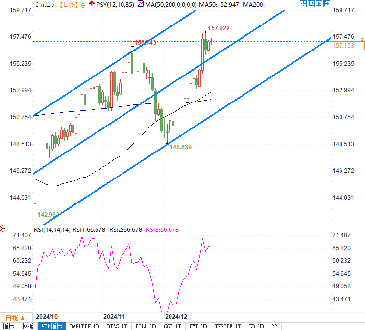 与此同时,日本财务大臣加藤胜信对近期日元的快速贬值表示担忧,并重申政府将对过度抛售日元采取适当的干预措施。然而,日元的疲软还受到外部因素的影响,尤其是市场对美联储2025年更加鹰派前景的调整。基准10年期美债收益率近期达到自5月以来的最高水平,进一步强化了美元的吸引力。