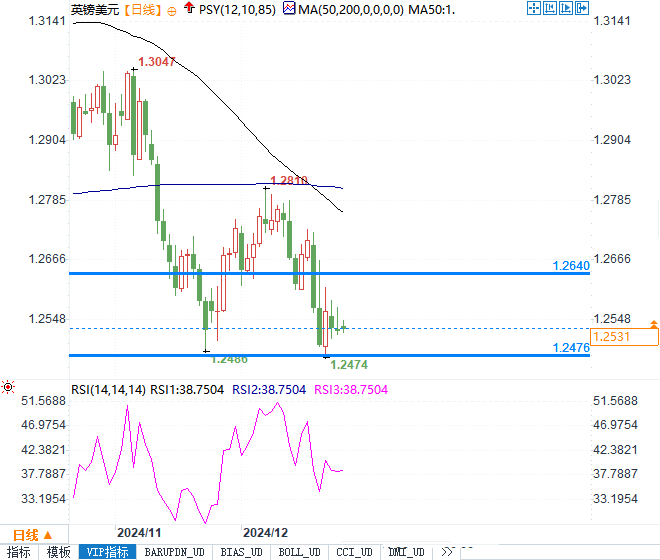 英镑/美元技术分析英镑/美元现报1.25310,在1.25739的关键枢轴点附近震荡。短期阻力位于1.26400,突破该水平可能推动汇价进一步上行,目标位为1.27276。下方初步支撑位在1.24761,更深层次支撑位于1.23883。