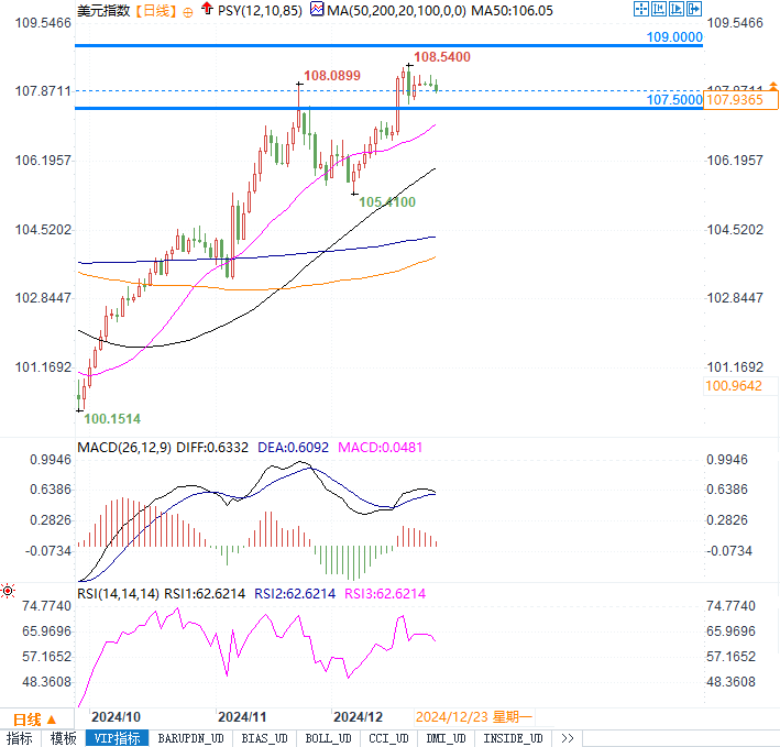 美元指数可能回调至107.50甚至107.00支撑区域。