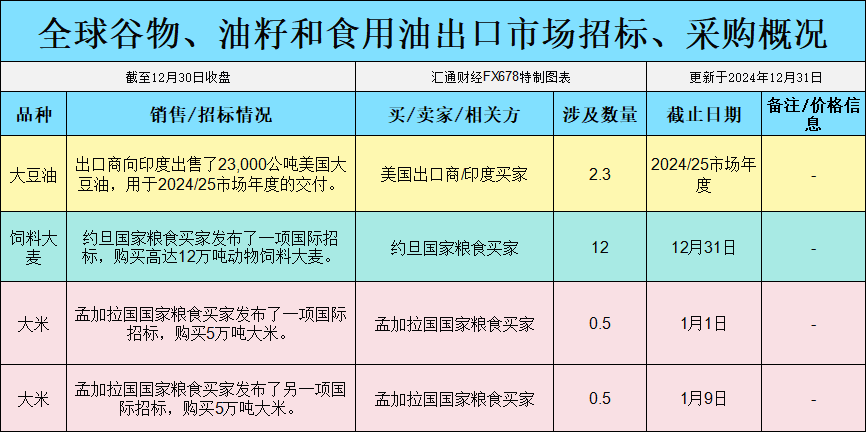 汇通财经APP讯——周二(12月31日),随着假期气氛弥漫,CBOT谷物期货市场波动受限,但多空力量的细微调整和国际市场动态依旧为未来走势提供了重要线索。本分析结合最新数据与市场观察,梳理各品种的现状与潜在方向。