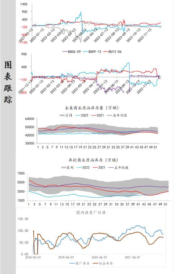 供应端:据美国能源信息署最新数据显示,截止2022年12月05日当周,包括战略储备在内的美国原油库存总量80091.7万桶,比前一周下降728.3万桶;美国商业原油库存41389.8万桶,比前一周下降518.6万桶;战略原油库存量38701.9万桶,比上一周下降209.7万桶;美国汽油库存总量21908.7万桶,比前一周上升531.9万桶。商业原油库存比去年同期低4.38%,比过去五年同期低8.41%;汽油库存比去年同期低0.10%,比过去五年同期低约2.68%;馏分油库存比去年同期低6.16%,比过去五年同期低7.80%。