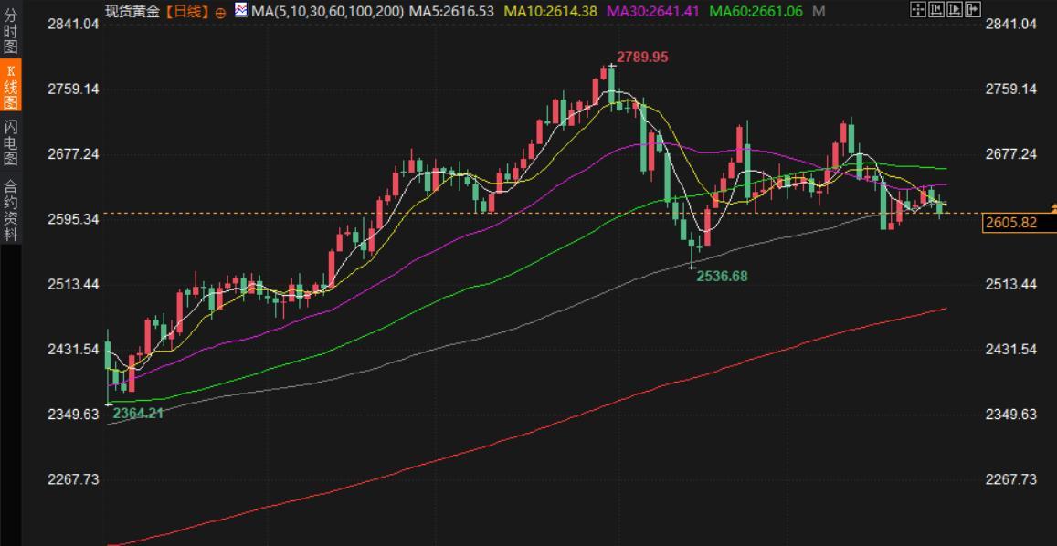 现货黄金交投于2604.26附近,新年假期前,市场交投清淡,交易商等待新的催化剂,包括下周的美国经济数据,这些数据可能会影响美联储2025年的利率前景,以及即将上任的总统特朗普的政策;