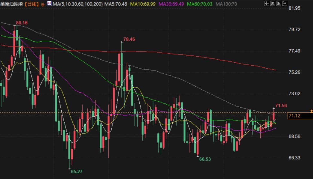 美原油交投于71.10美元/桶附近,因投资者押注未来几周美国和欧洲气温下降将提振柴油需求,提振油价短线上行。