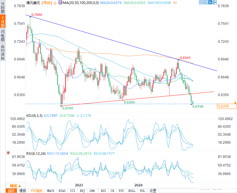 美元指数在本年度以高位收官,澳元/美元货币对在2022年10月以来的最低水平附近持平。其交易价格为0.6227,远低于2024年的高点0.6942。