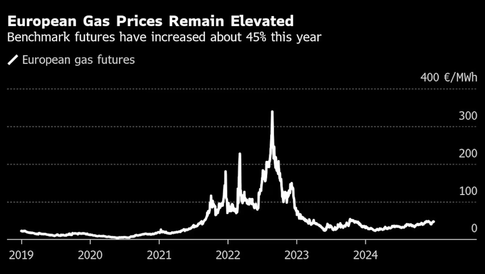 标题:欧洲天然气价格全年上涨约45%,欧洲消费者2025年开局艰难