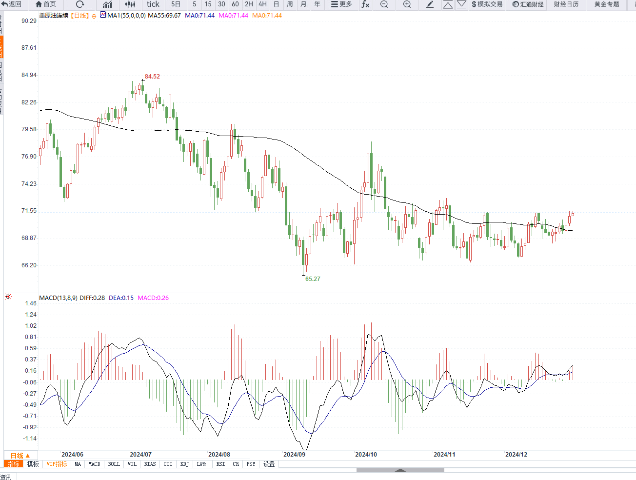 美原油日线图,来源易汇通)