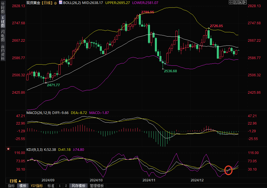 现货黄金窄幅震荡,目前交投于2623.38美元/盎司附近。周二金价收涨0.72%,收报2624.28美元/盎司,帮助金价2024年上涨27%,创下了创下2010年以来的最大年度涨幅,受避险需求和各国央行降息带动;不过市场情绪可能会变得更加谨慎,这取决于特朗普第二任总统任期内的政策转变。另外,