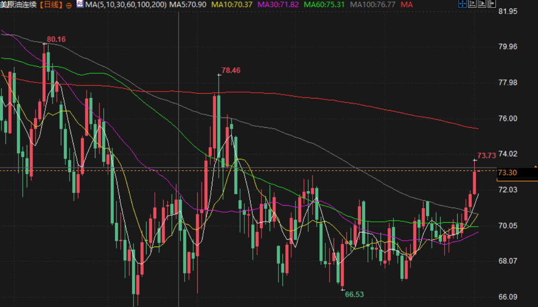 布伦特原油期货报收于每桶 75.93 美元,上涨了 1.7%。美国原油报收于每桶73.13美元,上涨1.41美元,涨幅为2%。