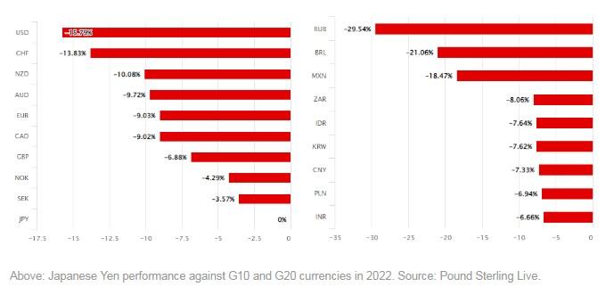 图1:2022年日元兑G10和G20货币的表现