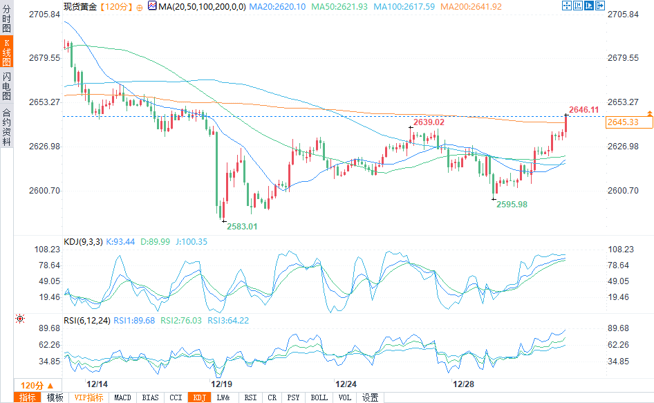 汇通财经APP讯——周四(1月2日)欧盘时段,黄金价格延续其上涨势头,交易价格接近2643美元。此次价格上涨反映了货币宽松政策、地缘政治风险加剧以及创纪录的央行需求等多种因素的综合作用。世界黄金协会的数据显示,受利率下降和不确定性增加的推动,2024年黄金价格上涨了27%,创下了自2010年以来的最佳年度表现。