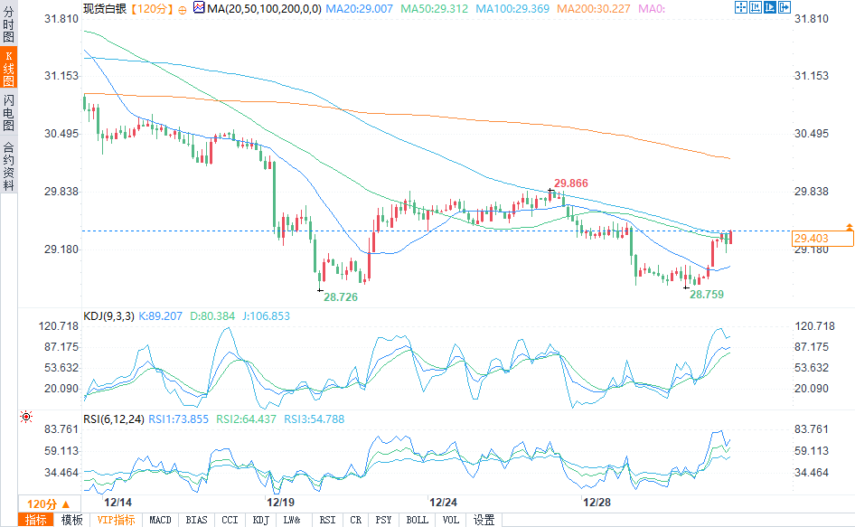 白银受益于避险需求和经济乐观情绪白银追随黄金的上涨轨迹,交易价格为29.33美元,日内高点达到29.36美元。相对于黄金而言,白银的价格优势使其在全球充满不确定性的情况下,成为寻求避险资产的投资者颇具吸引力的选择。央行的关注,再加上美元走弱,进一步支撑了白银价格。