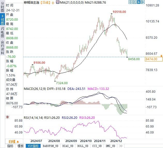 不过,也有一些潜在的利好因素。原油价格周四(1月2日)小幅走高,这是2025年的首个交易日。投资者在假期结束后谨慎关注中国经济的复苏和燃料需求的增长。原油期货走强通常会使棕榈油作为生物柴油原料的选择更具吸引力,这在一定程度上对棕榈油价格构成支撑。