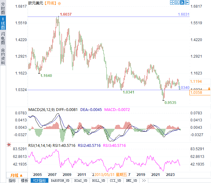 潜在的下行风险:基于当前市场情绪和技术指标的反映,欧元/美元可能会进一步下探,最终跌破2024年低点1.0332。市场情绪较为疲弱,