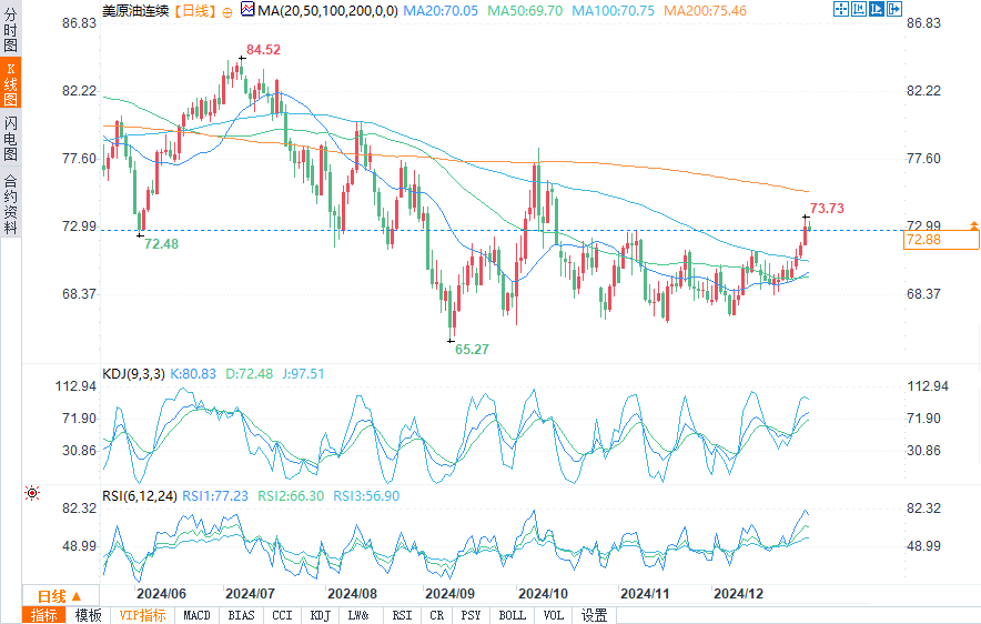 汇通财经APP讯——周五(1月3日)欧盘时段,原油价格下滑,但在周四上破200日移动均线切入位72.20美元后守住了周线涨幅,该位目前是支撑位。市场显示出进一步上涨的空间。