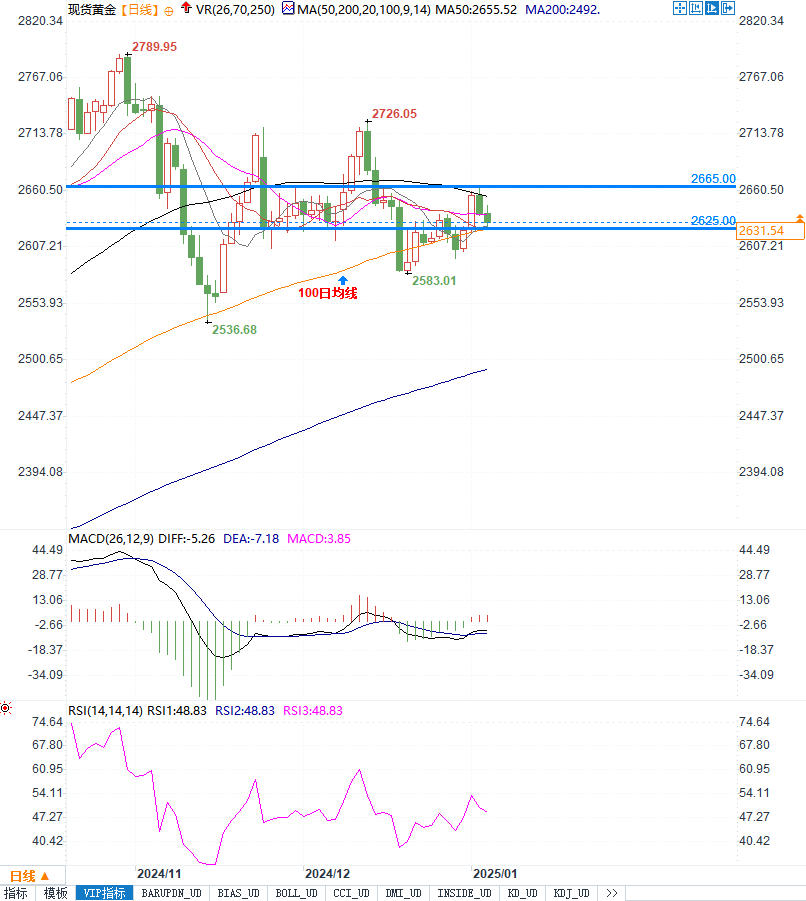 从基本面来看,美联储的强硬立场和国债收益率上升对黄金形成压制,但美元回撤和地缘政治风险为黄金提供了一定支撑。从技术面来看,黄金价格面临2625美元的关键支撑,若跌破该水平,将打开进一步下行空间;反之,若能突破2665美元,则可能测试2700美元的重要阻力位。