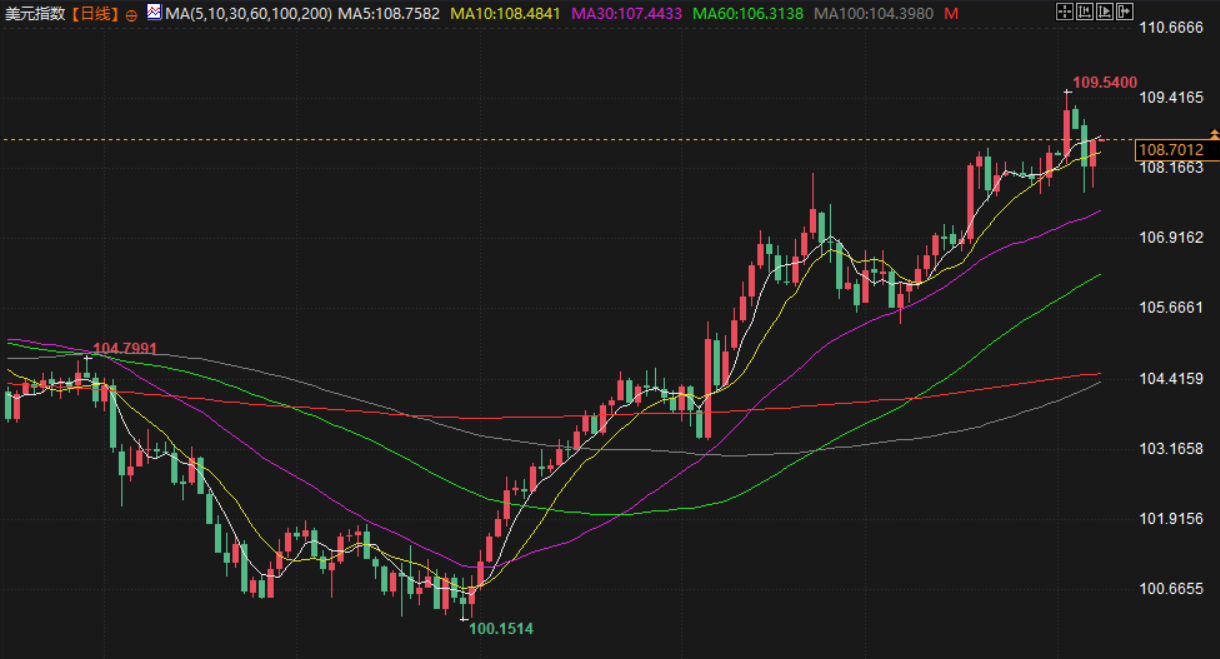 1月2日,该指数触及109.58的两年多以来最高,人们预期特朗普承诺的财政刺激、减少监管和提高关税将促进美国经济增长。