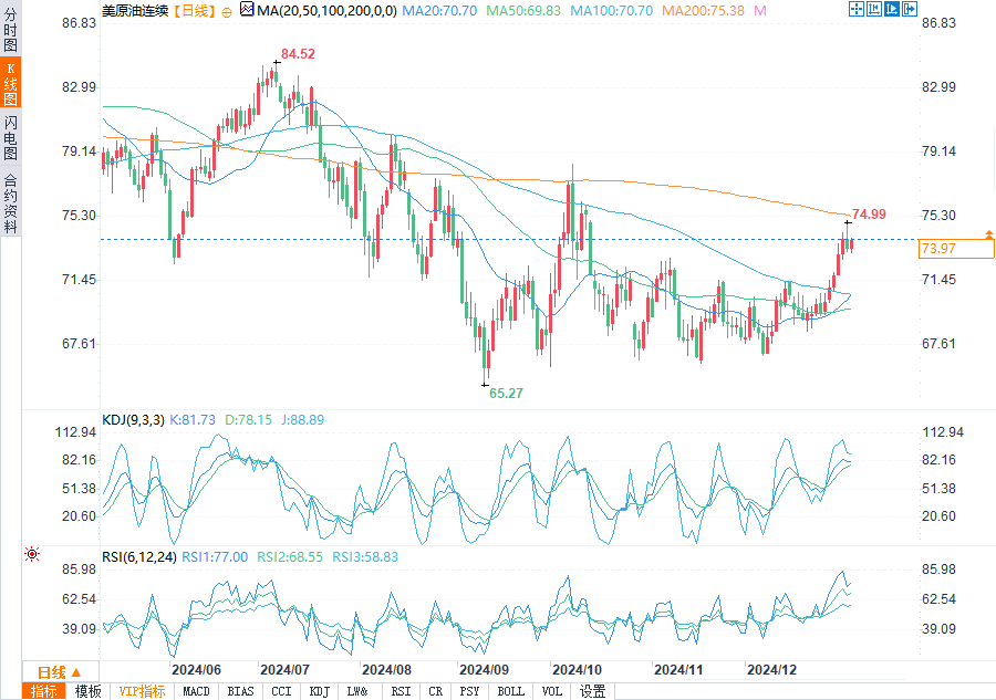 今日预期交易区间位于72.00美元支撑位与75.00美元阻力位之间。