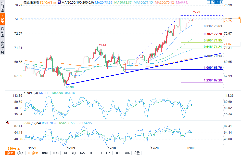 汇通财经APP讯——周三(1月8日)欧盘时段,原油期货大幅攀升,延续涨势。油价显示出强劲的上行倾向,除非即将公布的库存报告出现意外的利空,否则油价将进一步上涨。