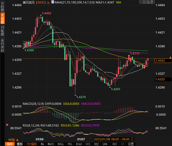 此外,尽管加拿大12月Ivey采购经理人指数(PMI)上升至54.7,显示出经济稳步扩张,但未能达到市场预期的55.4,表明加拿大经济增长面临一定的挑战。市场的目光也集中在本周五发布的加拿大就业报告上,尤其是12月的就业变化和失业率数据。