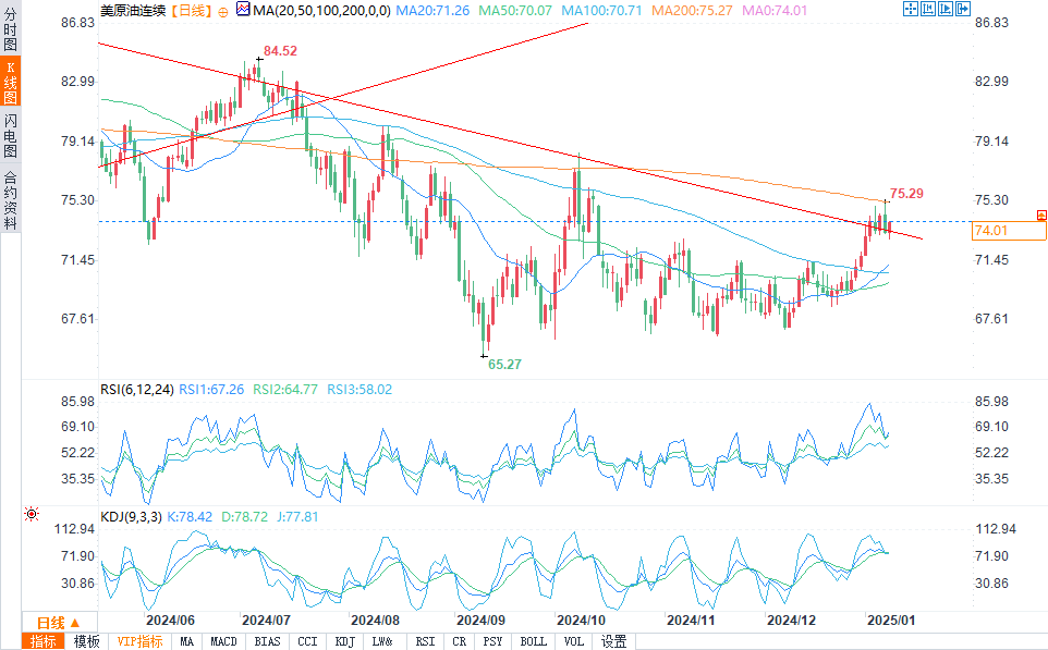 持续突破75.29美元将预示着上升趋势的继续,下一个目标是77.36美元。此外,持有200日和50日移动均线上方可能为价格提供强有力的支撑。