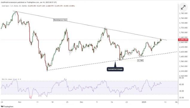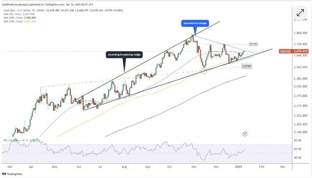 黄金日线图显示,金价从呈上升的楔形扩大形态的支撑位反弹。金价仍处于看涨趋势,表明有进一步上涨的潜力。价格在这个形态内形成了一个对称的三角形,预示着积极趋势的延续。随着今天非农就业数据的发布,强劲阻力位预计在2720美元,这一阻力位必须被清除才能开始有意义的涨势。在下行方面,金价必须跌破2550美元才能显示出进一步的看跌势头。