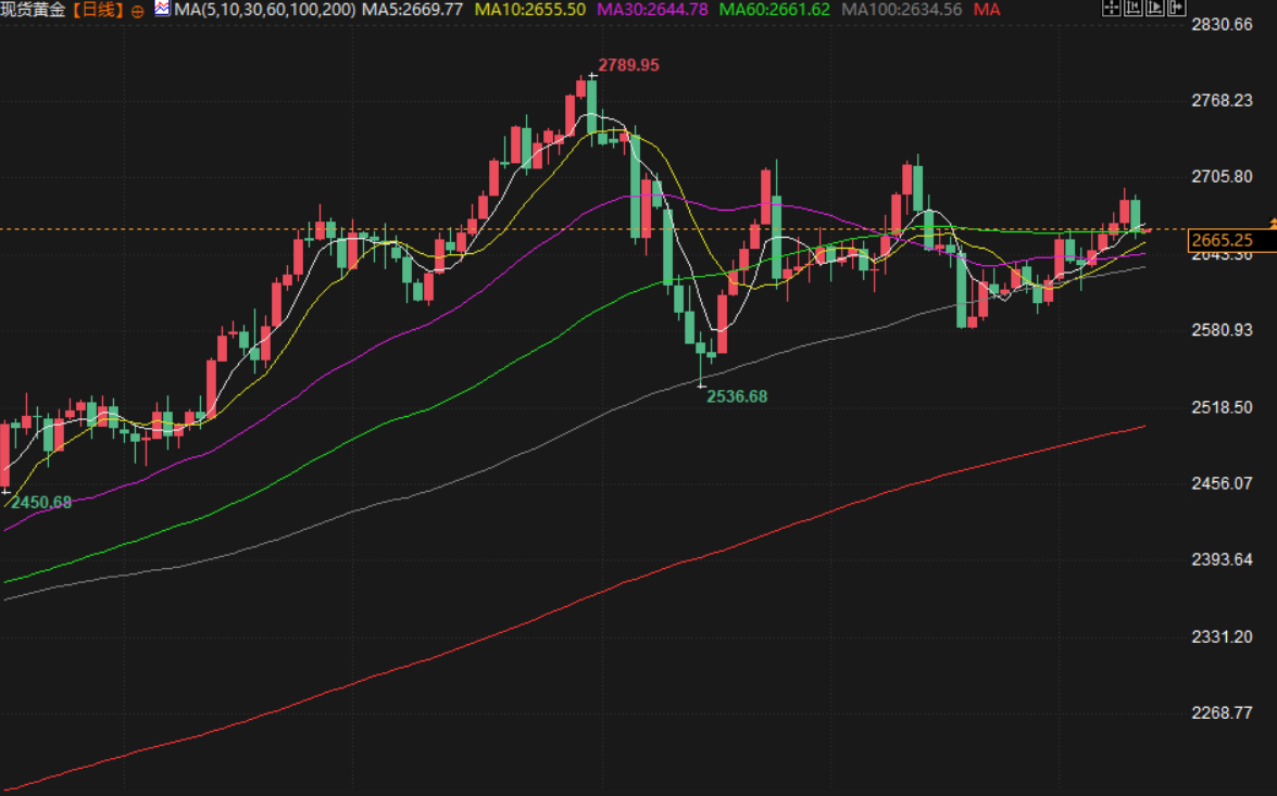 现货黄金交投于2665.43附近,因美元急升至逾两年最高,上周强劲的就业报告巩固了美联储今年将谨慎降息的预期,金价涨幅受限;