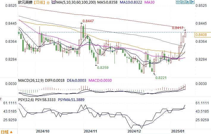 欧元兑美元一度上涨0.31,创逾三个月新高至0.8417;如果政府借款继续上升,英镑可能会测试至新低。