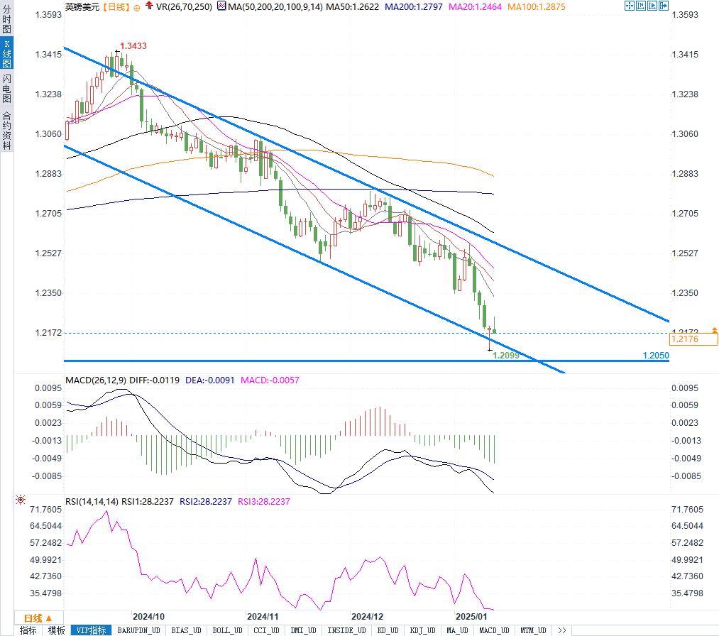 关键支撑与阻力位从当前走势来看,英镑/美元可能会在2023年10月低点1.2050附近找到支撑。如果汇价进一步下行,突破这一支撑水平,可能会引发更大幅度的下跌。