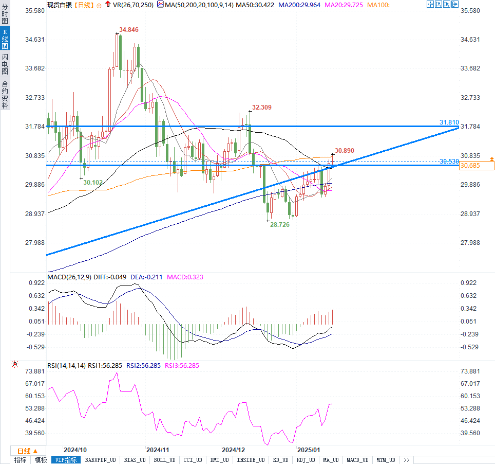 总体来看,银价可能也会继续受到技术面支撑,并且随着美联储政策预期和美国经济数据的变化,银价的上涨动能仍然存在。