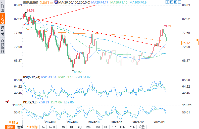 特朗普推迟征收关税拖累油价在美国总统特朗普宣布将对加拿大和墨西哥的新进口关税推迟到2月份之后,油价周二下跌。由于交易商消化了可能对加拿大和墨西哥进口商品征收25%关税的影响,这可能会扰乱北美能源贸易,最初的缓解变成了担忧。美元走强使得国际买家的油价更加昂贵,加大了油价下跌的压力。