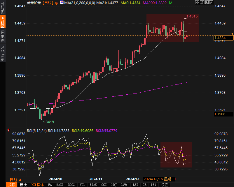 展望未来,USD/CAD的走势将继续受到贸易动态和中央银行政策变化的影响。特朗普的关税威胁仍然是市场关注的焦点,可能加剧投资者对加拿大经济的不确定性。同时,市场对加拿大央行采取鸽派政策的预期使得加元前景显得更加疲弱。