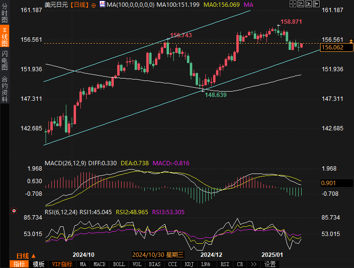美元兑日元可能会重新测试多月来的高点,接近159.00区域,这一水平曾在1月10日触及。