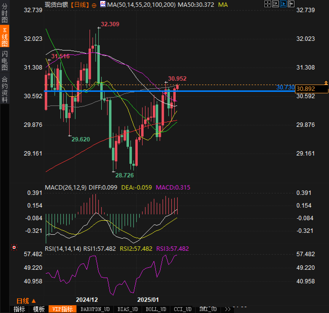 白银技术分析支撑水平:白银的关键支撑位在30.73美元,该点位为短期多空分水岭。若跌破该支撑,下方目标将指向30.45和30.15美元。50日均线和200日均线分别位于30.37和30.31美元,支撑整体上涨趋势。