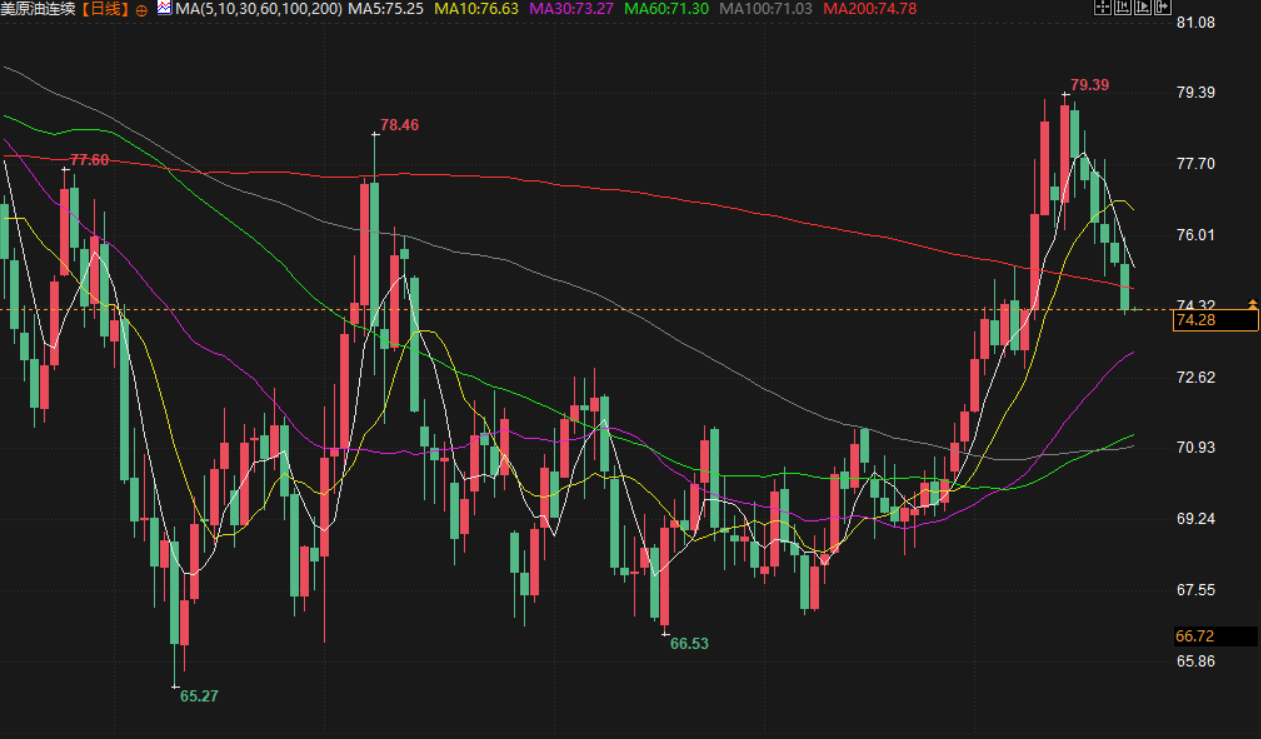 布伦特原油期货收低0.9%,报每桶78.29美元。美国原油收跌1.09%,报74.62美元。