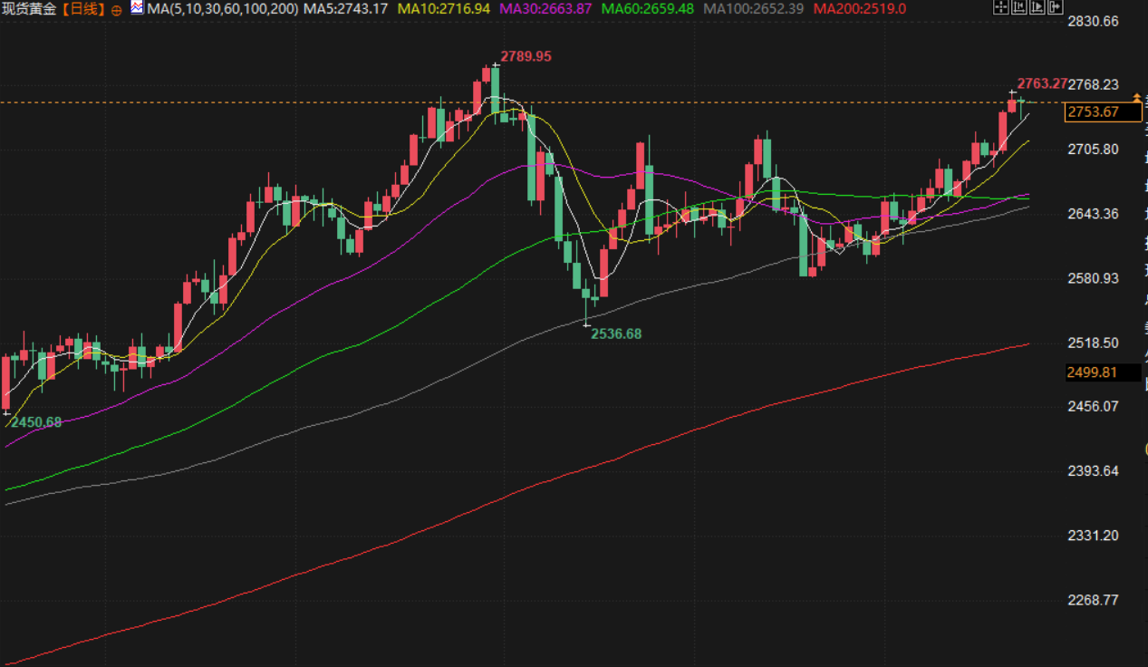 现货黄金交投于2753.78附近,美国总统特朗普呼吁降低利率后,美元走软,市场注意力仍集中在其政策的广泛影响上;