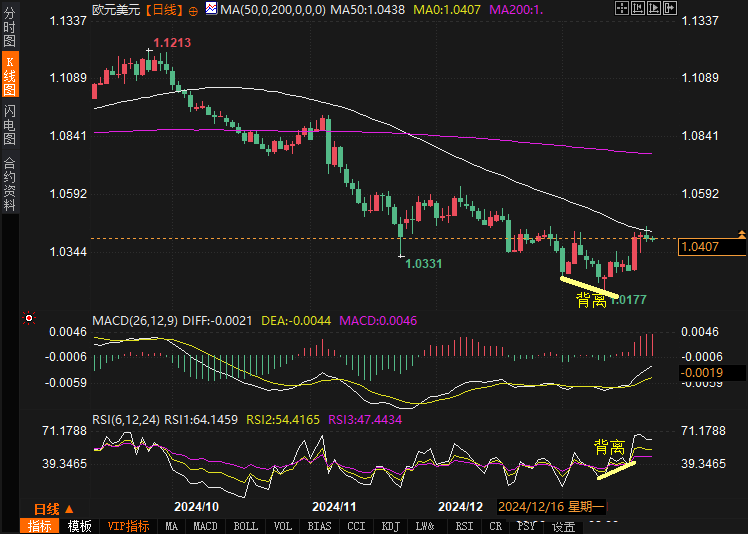 在短期内面临压力,无法突破1.0460这一重要阻力位。此前该货币对在1月13日触及两年低点1.0175后展开反弹,形成动量与价格背离的局面。14日相对强弱指数(RSI)呈现低点上移,而价格走势却呈现新低,为短期反弹提供支撑。
