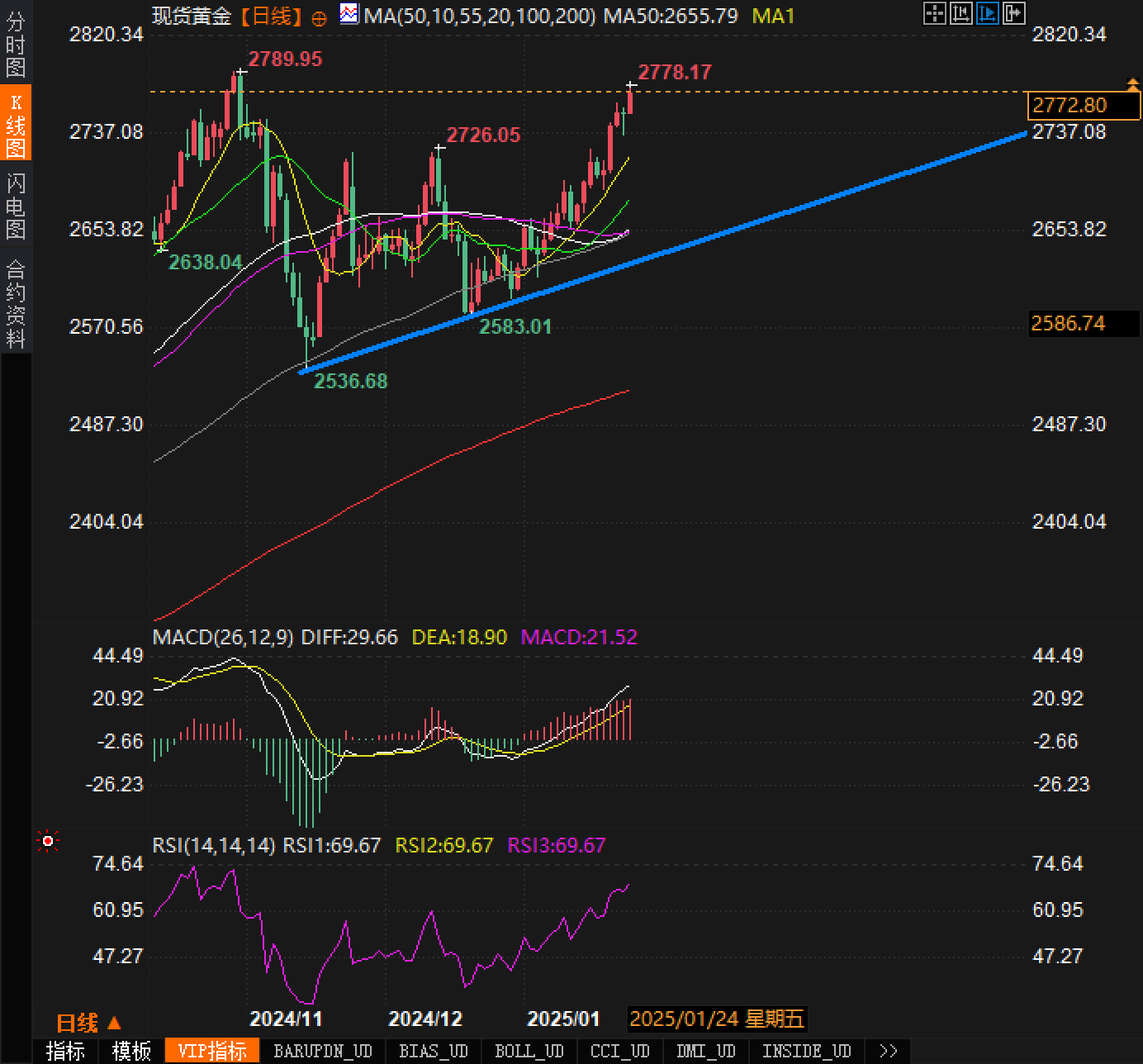 汇通财经APP讯——黄金价格在特朗普言论和政策影响下持续上涨,触及2778美元的近月新高。特朗普要求降息并加剧保护主义政策,推动资金流向黄金避险。技术面显示,短期支撑位在2760-2758美元,阻力位在2790美元。黄金市场依然看涨,但需警惕技术性超买回调风险。