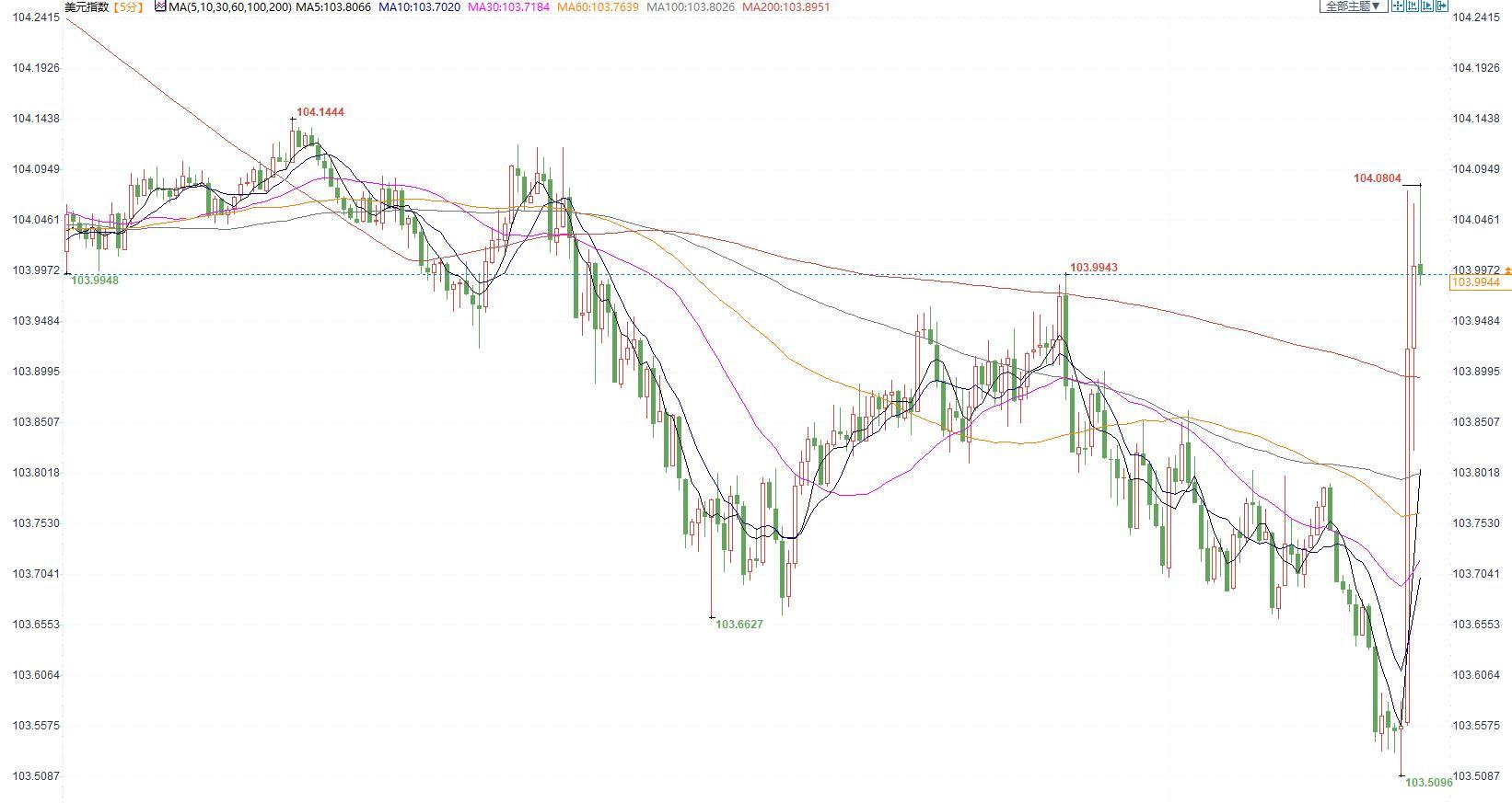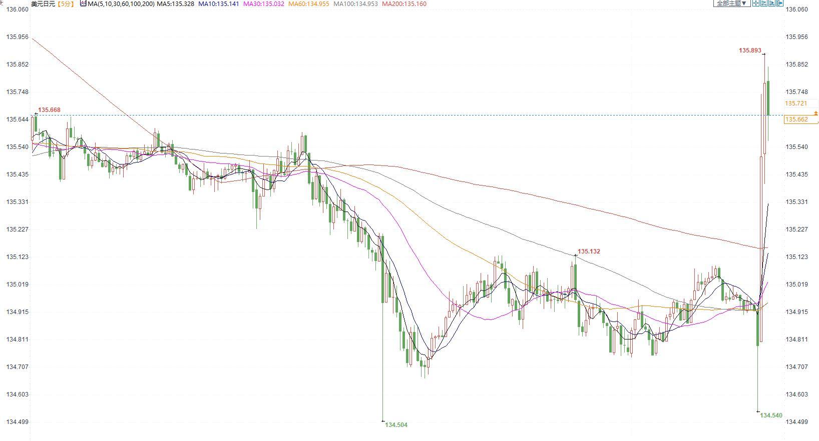 美元指数拉升50点,下挫50点。美元日元跳升100点。美股三大股指短线下挫均转跌。美国国债扩大跌幅,2-10年期美国国债收益率升至日内高点,10年期美债收益率现报3.556%。