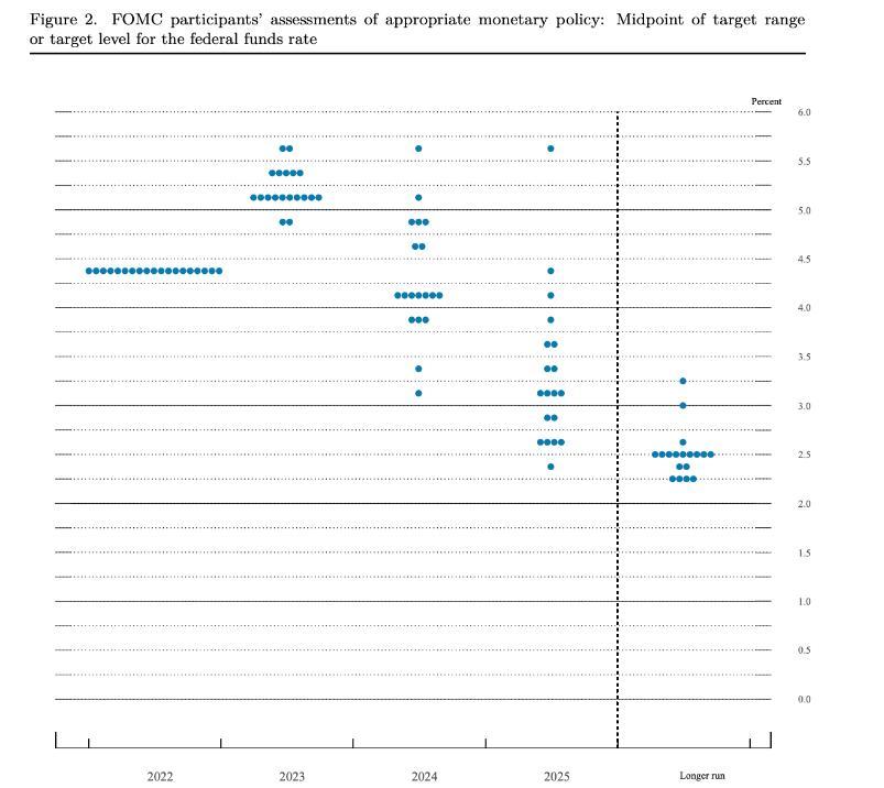 FOMC点阵图对2023年利率水平预测变化情况一览