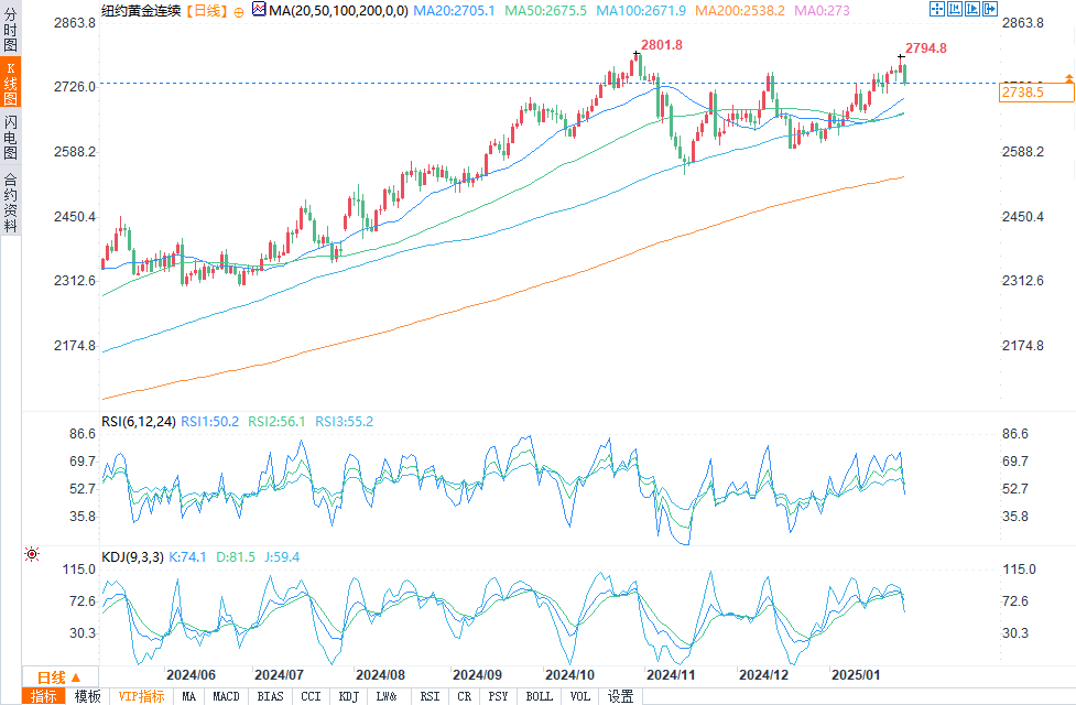 从技术层面看,2月黄金期货多头近期整体技术优势稳固。在K线图上价格呈上升趋势。多头的下一个上行价格目标是在合约高位2,826.30美元上方收盘。空头的下一个近期下行目标是将期货价格推至坚实的技术支撑位2,700.00美元以下。第一个阻力位见于隔夜高点2,778.10美元,然后是上周高点2,794.80美元。首个支撑位见于隔夜低点2,752.00美元,然后是2,741.00美元。