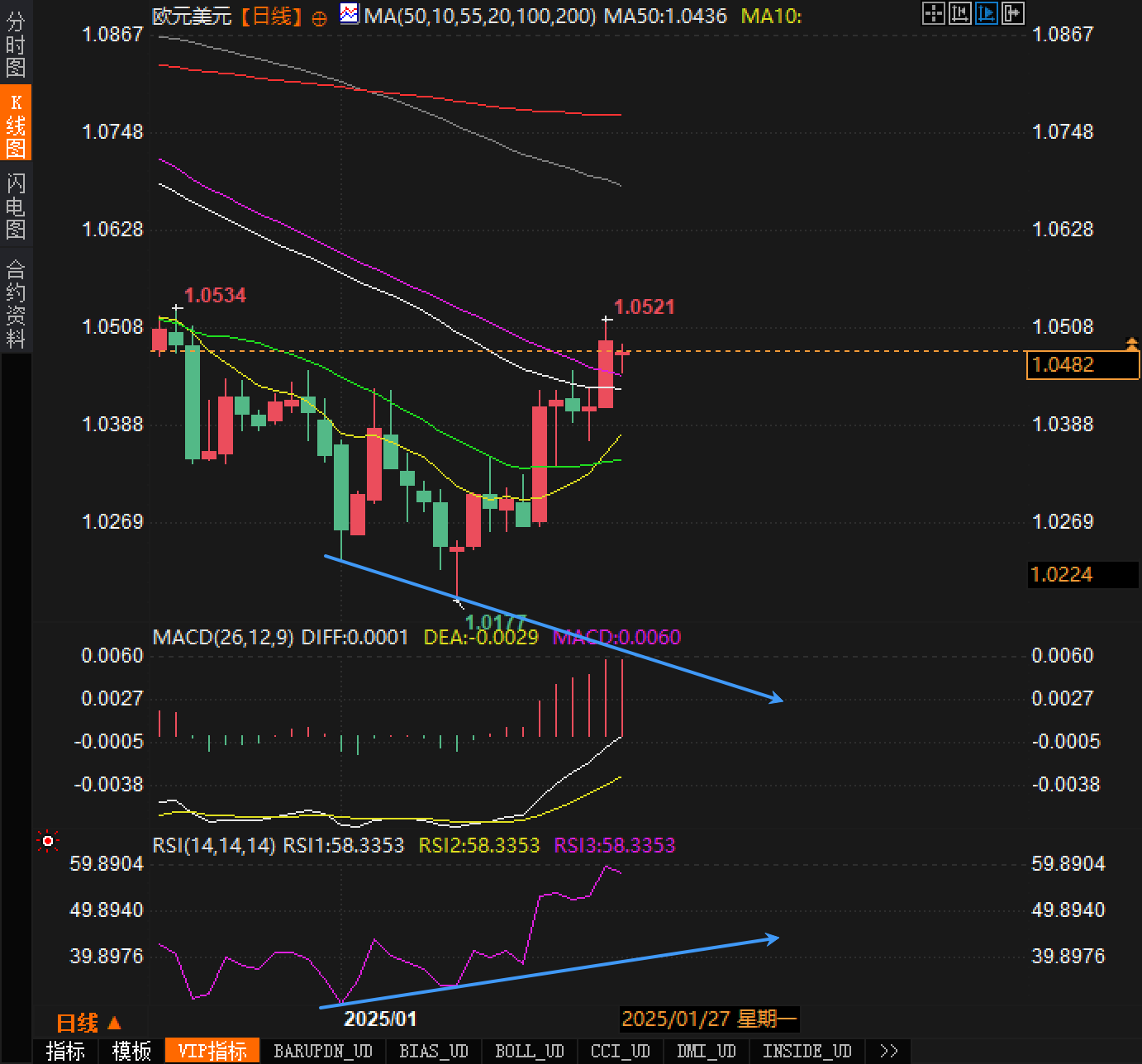 市场密切关注即将公布的经济数据,特别是美联储和欧洲央行的利率决策,以及美国的经济数据。如果数据表现强劲,美元可能继续走强,限制欧元的进一步上涨;而若数据表现疲软,则可能给欧元提供反弹的机会,推动汇率回升至1.0520或更高的区域。