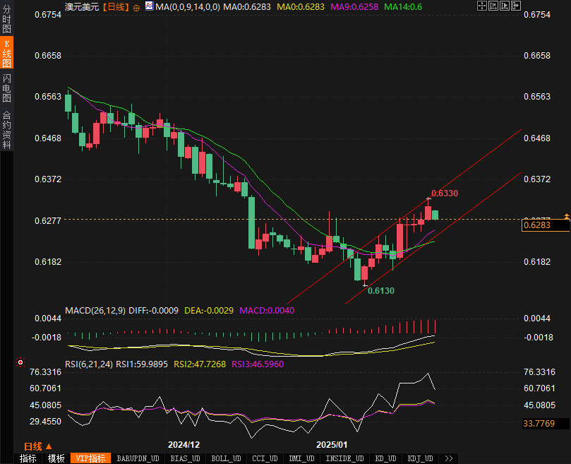 整体来看,尽管技术面显示澳元短期内具备反弹潜力,但基本面的多重不利因素仍可能令其上行乏力。投资者应警惕外部政策变动带来的风险,尤其是特朗普政策可能进一步刺激市场避险情绪,这对风险资产如澳元而言无疑是重大挑战。