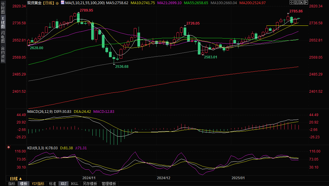 金价周一曾因科技股引领市场整体遭抛售而下跌1%,创下12月18日以来的最大跌幅,金价周二反弹0.8%,收报2763.25美元/盎司。