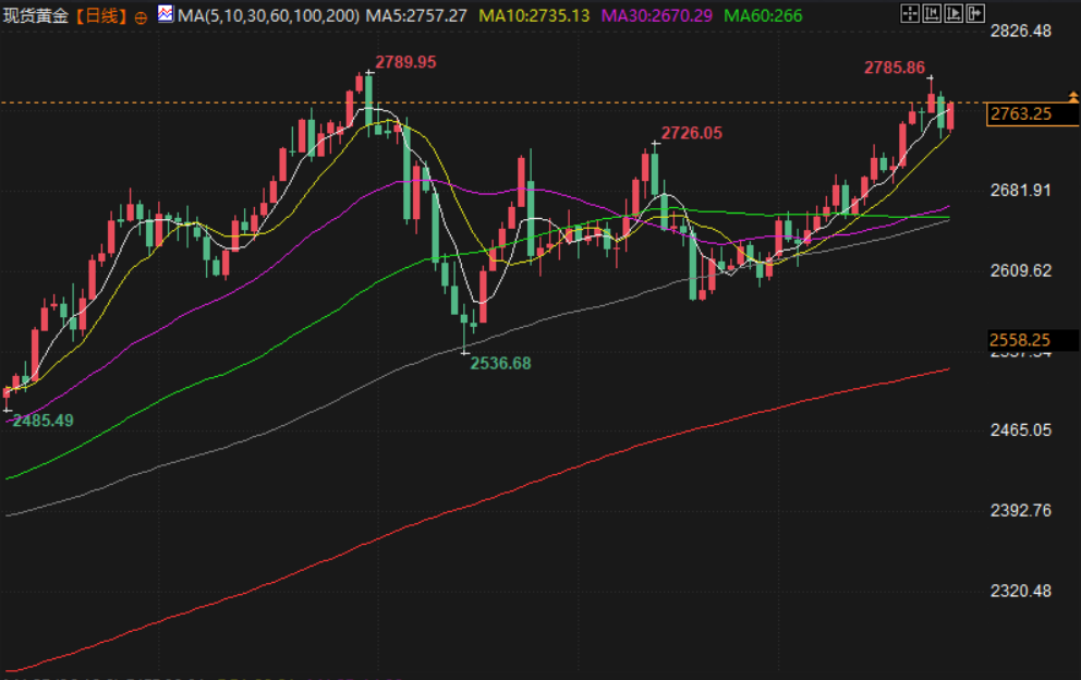 现货黄金交投于2762.98附近,金价周二反弹,因美国总统特朗普提议征收关税的不确定性不断增加,投资者对这一避险资产保持兴趣。