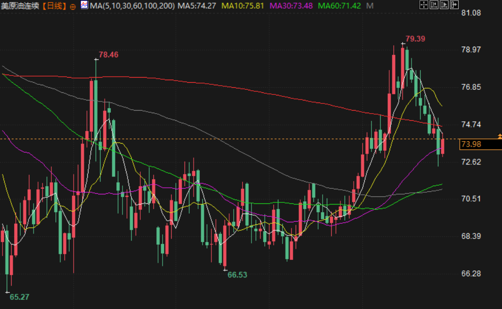 美原油交投于73.92美元/桶附近,油价周二收涨,从数周低位反弹,白宫表示,美国总统特朗普仍计划本周对加拿大和墨西哥进口商品征收关税。其他地区气温升高导致需求减弱的担忧抑制了涨幅。