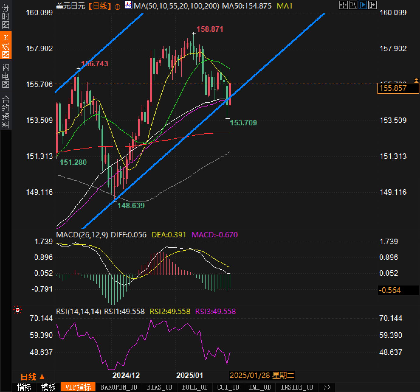 综合基本面和技术面的分析,美元/日元的近期走势可能会继续受到基本面因素的影响。特朗普的关税言论以及美国通胀压力的加剧使得美元需求上升,而日元作为低收益货币的表现受到限制。技术面则显示出下行的压力,突破了多月以来的上升趋势通道支撑后,市场情绪开始转向看空。尽管市场可能会迎来一些反弹,但在156.00附近的阻力较为强劲,美元/日元的上涨空间可能会受到限制。