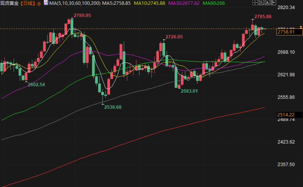 现货黄金交投于2758.84附近,金价周三下跌,美元和美债收益率上涨,此前美联储如市场普遍预期的那样维持利率稳定,但对未来降息的时间没有提供什么明确的信息。