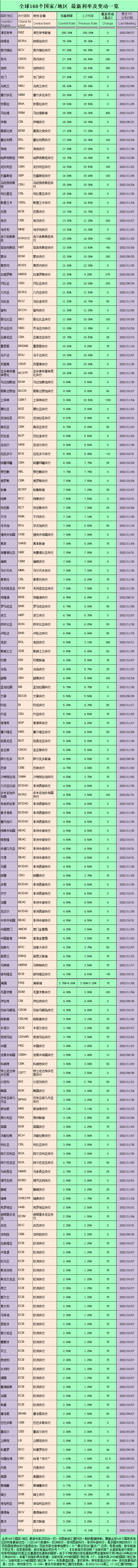 美联储加息周期关键转折今晚到来,一览“全球168个国家/地区 最新利率及变动”